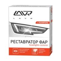Полироль-реставратор фар LAVR – набор абразивных материалов и финишная паста для полировки пластиковых фар автомобилей. Средство возвращает прозрачность пластиковым фарам, удаляет царапины и помутнения, значительно увеличивает эффективность работы ламп. Особый состав обеспечивает продолжительный результат после полировки.